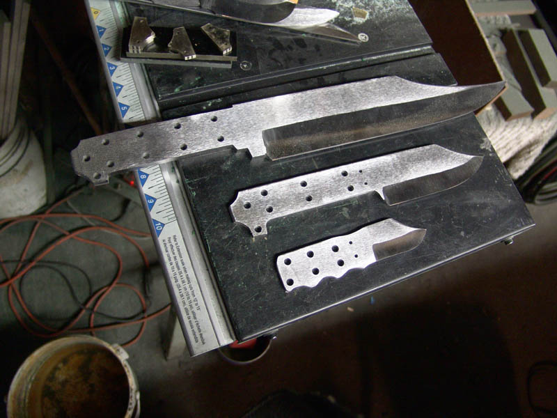 I will go through several more grinds with successively finer grit belts, 220, 400, 600, 800, 1200. Then comes hours of hand sanding on the flats of the blades for a hand rubbed satin finish. Once the blades are finished, I will start on making the guards and handles.