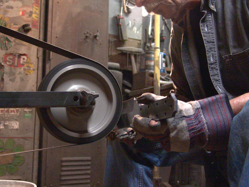 Now I start the rough grind with a 60 grit belt. This is to remove the bulk of the metal before heat treating while the steel is in it's relatively soft annealed state.