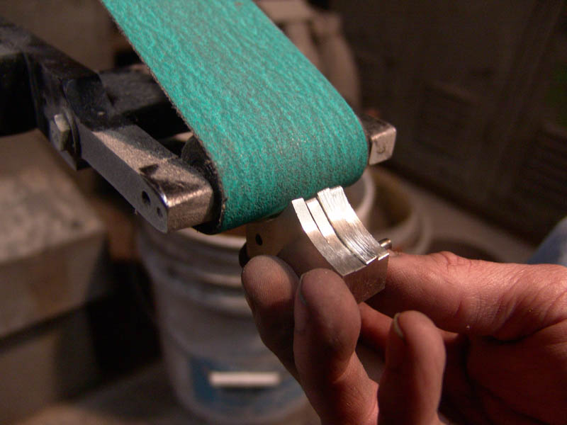 Now I need to work on shaping the guard. I want it to have rounded ends. I grind the outer radius with a 3" grinding wheel.