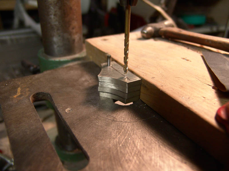 Here are the stainless steel bolsters that I will put on either side of the stainless steel guard. You can see how I marked them as a guide to do my filework.